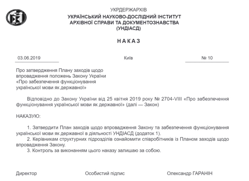 Приклад оформлення наказу юридичної особи