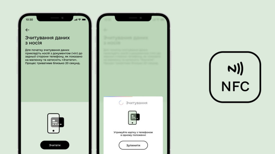 Прикладіть документ до задньої панелі смартфона для зчитування через NFC.